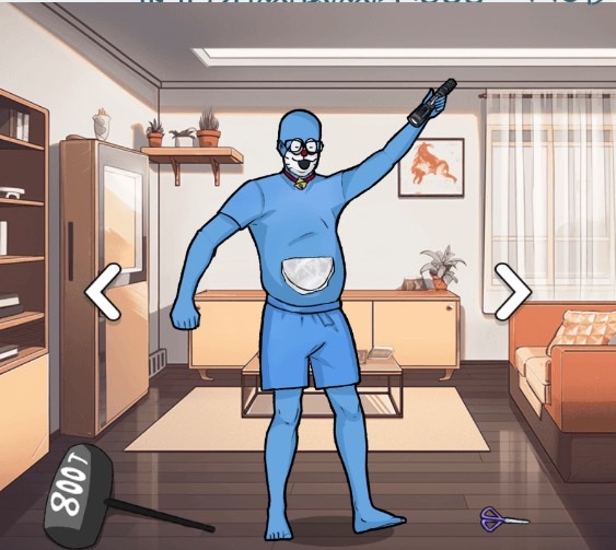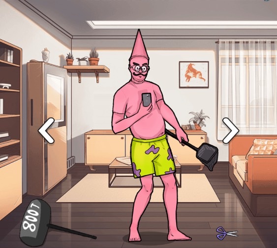 3、拖动剪刀剪猪鼻包,再拖动猪鼻给男子,拖动眼罩给男子,拖动红色颜料给男子,最后将棒棒糖拖动给男子即可通关。