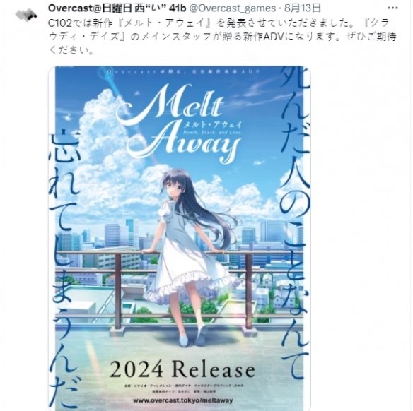根据官方介绍,《Melt Away》讲述的是至亲之人死亡与淡淡青春的原创视觉小说游戏,音乐由曾在日本Falcom工作、负责过《轨迹》系列与《伊苏》系列等作品的作曲家“籾山紗希”参与创作。