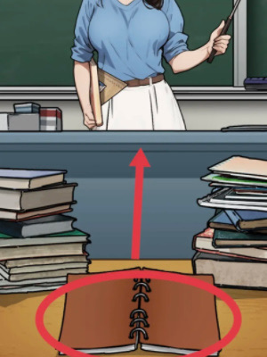 3、进入教室我们点击数学课本进行上课,接着上划桌子上的课本,通过课本缝隙观察老师在她转身的时间吃东西;