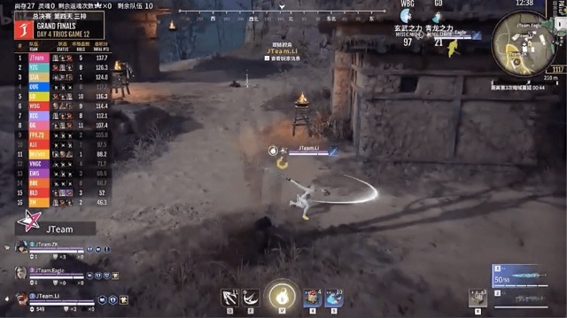 不过到了决赛中,JTeam一改颓势,决赛的首局比赛就凭借雕的大佛出色发挥,多次在决赛圈完成双抓,拿下20个击败分,以33分稳坐积分榜第一之位。