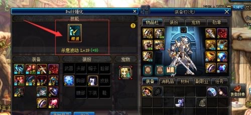 第五:最重要的一步,添加完装备和时装宠物后,我们这时需要在界面上面的BUFF强化技能那里打上勾,这样才会起效果,如下图所示: