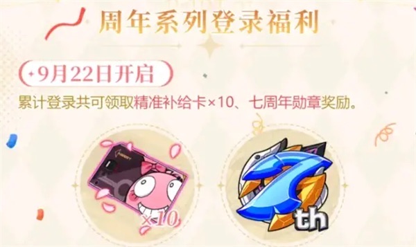 1、期间登录游戏领取精准补给卡和七周年勋章奖励。【足记网】