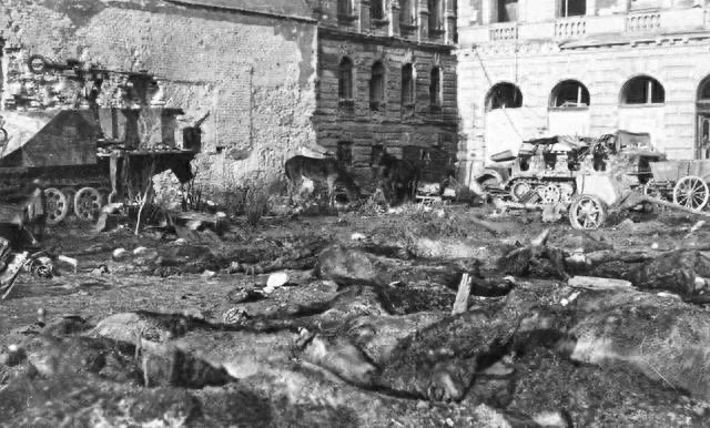 尤其当苏军反应过来后,立刻针对德军展开了大屠杀。突击队是一个接一个地覆灭,街道上遍地的尸体,就连反坦克沟壕里,也堆满了德军尸体。
