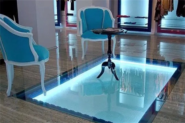 4、玻璃地板是透明的所以看上去呀比一些别的地板更加美观大方。【足记网】在家中安装玻璃地板更加时尚。玻璃具有反光的效果。所以经过反光家里就会变的更加明亮。每个角落都会有自然光的照射,这样房屋内更加温馨。