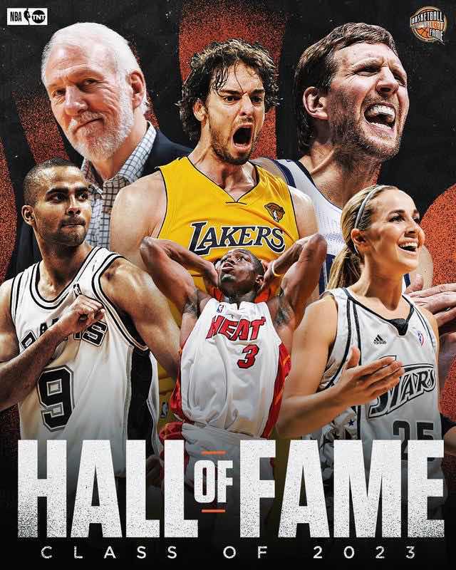 8月13日讯 2023年奈-史密斯篮球名人堂,波波、韦德、德克、大加、帕克、哈蒙正式入选!