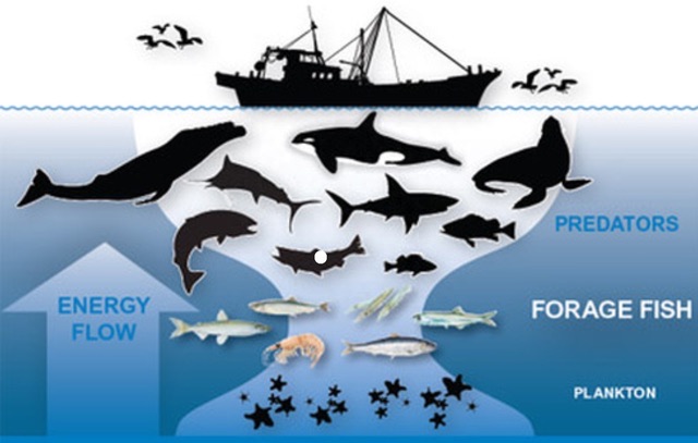 人类主要捕捞海洋中的鱼、虾、蟹等较高等级的生物,这些生物处于生物链的较高处,拥有捕食其他生物行为,这个过程中,可能富集较高浓度的有害物质,从而影响整个生态安全。