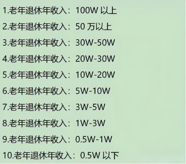 目前我国的养老金体系为“双轨制”,农村与城镇的经济发展水平有着很大的不同,农村的养老金以补助、互助为主,城镇的养老金体系采取“按领取、按支付”的形式。按领取金额分有十个等级。具体如下图所示: