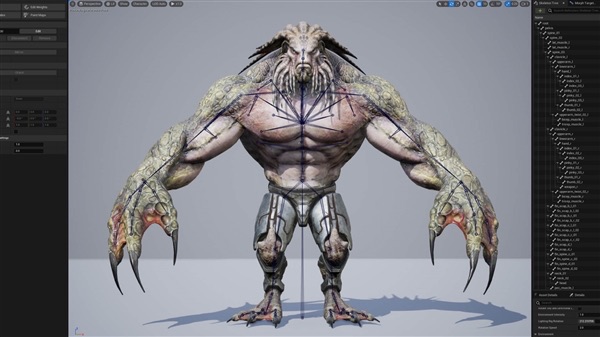 新推出的实验性骨骼编辑器能让动画师用各种工具处理骨骼网格体,包括绘制蒙皮权重。