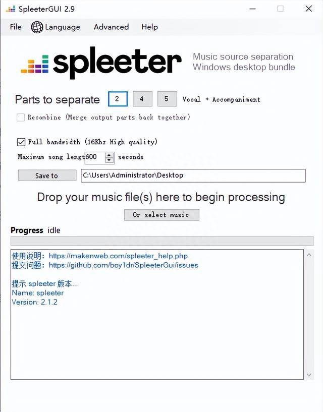 它体积小巧,使用简单,不需要双击打开软件,只需要将音频文件拖拽到软件上面,然后可以看到处理进度。稍微等待,就可以看到得到的人声音频和伴奏音频在同一个文件夹中展示。