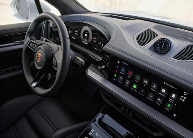 内饰方面也带来了不错的创新,在大部分细节上与保时捷卡宴采用相同的设计,但是车顶换上了Race-Tex 材质,并配备了具备加热功能的 GT Sport 方向盘以及带有散热装置的 15W 前排手机无线充电板等配置。而作为全新卡宴,它也将会配备上副驾驶的娱乐屏,只是它会再选装系列中,想要拥有它就需要多加费用了。
