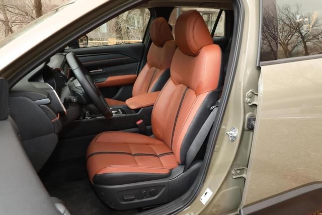 真皮+仿皮材料拼接制成座椅表层,柔软质感相互融合并削弱整体制造成本。座椅设计的档次感与美观度得到保留,也可借材质使用的变化部分压低售价提升性价比。柔软表层设计结合内置厚实填充物,对舒适性提升有着良好辅助作用。