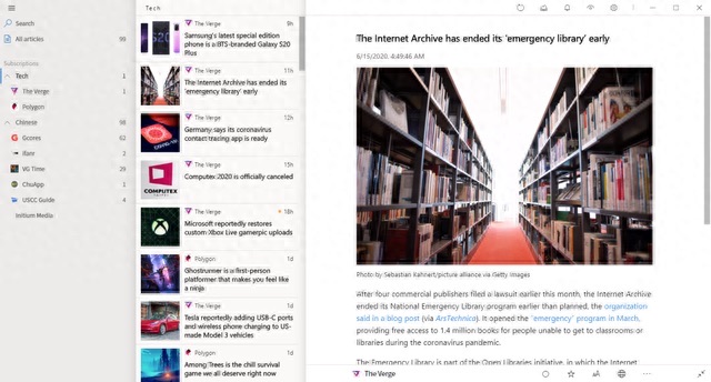 Fluent Reader 是一个开源的RSS 订阅工具。