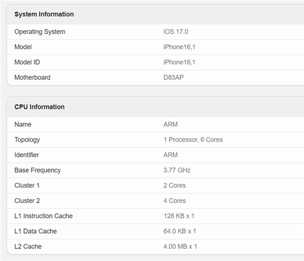 从目前的情况看,A17 Pro的大核频率最高可达3.77GHz,小核暂时不详,对比A16只快了310MHz,也就是刚刚9%。