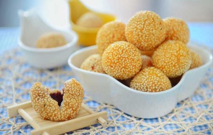欢喜坨不同地方叫法不同,很多北方地区是叫作麻圆,这种美食起源于湖北武汉,主要是用糯米、芝麻、面粉制成圆,再经过油炸而成,炸好的样子一个个像圆球,吃着外脆内软,软糯香甜,小孩子们特别爱吃。