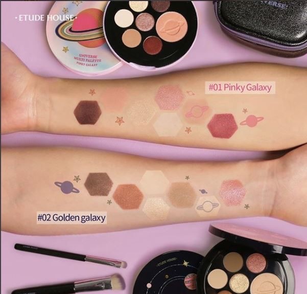 Etude House近期的新品,谜幻星尘众星云集双效彩盘,整系列包装真的是可以给200分,一盘拥有7种眼影在里面,还能当腮红使用,有雾面、珠光、亮片色眼影,最吸睛的地方是那银河星际感的星球浮印,小编的那一格始终舍不得使用啊。