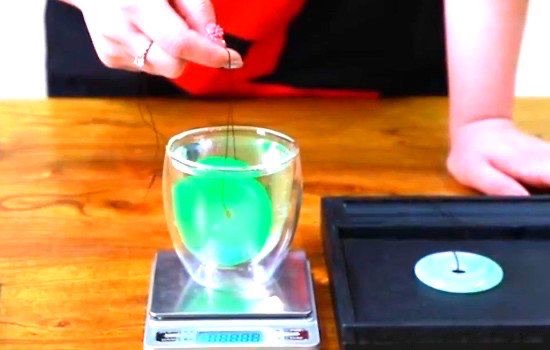 5、然后再将翡翠提起来放在水杯中,这一次翡翠要在水中呈现漂浮状态,不要接触到杯子,记录下这个时候的重量。【足记网】