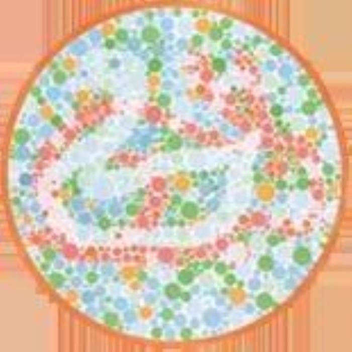 左图:全色弱者及正常者读不出来,红绿色盲者及红绿色弱者大多能看到5