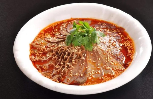 四川特色美食不得不提夫妻肺片,据说是一对夫妻发明的美食,真的超级下饭,所以在成都的饭桌上经常能够看到。夫妻肺片里没有夫妻,夫妻肺片里也没有猪肺,但是!有好吃的牛肉、牛肚和牛舌,色泽诱人,里面的配菜也很丰富,都切成了薄片,跟红油拌匀后,入口麻辣鲜香。