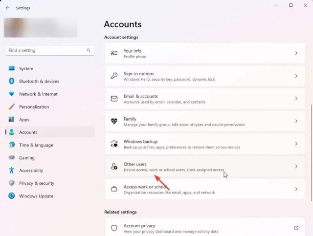 使用以下步骤删除 Windows 11 中的用户帐户。