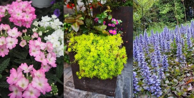 上面分别是美女樱、佛甲草和匍匐筋骨草