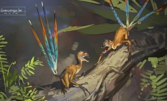这种恐龙体型是擅攀鸟一倍有余,体长为40厘米,生长有四枚20厘米羽翼。颜色靓丽,不过无法飞行,可能是炫耀展示自己的美。它生存年代为侏罗纪中期或晚期1亿6800万到1亿5200万年前,目前只发现了唯一一块化石,地理位置在我国内蒙古宁城县的道虎沟化石层中。