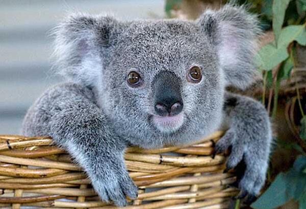 【考拉】考拉长相酷似小熊,看起来很憨厚,它有一对大耳朵,鼻子裸露且扁平,尾巴退化成一个“座垫”,使它可以长时间坐在树上,平衡感极强。