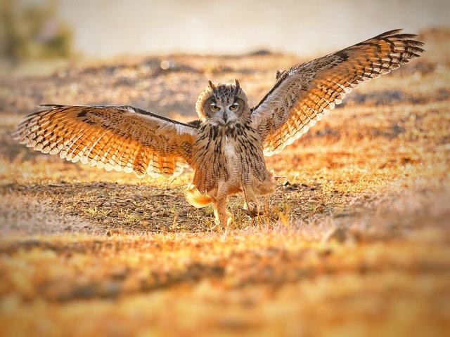 雕鸮,是鸮形目鸱鸮科雕鸮属的一种大型鸟类 ,全长55—71厘米,喙和爪均铅色,端部黑色,以农田鼠、野兔及雉类为食,有时也吃蛙、蛇和蜥蜴等,是世界上最凶猛的飞禽之一。