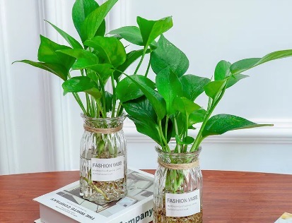 水培绿萝是非常好的室内装饰水培植物之一,攀藤观叶花卉。萝茎细软,叶片娇秀。在家具的柜顶上高置套盆,任其蔓茎从容下垂,或在蔓茎垂吊过长后圈吊成圆环,宛如翠色浮雕。