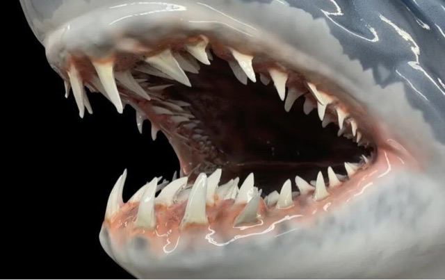鲨鱼是一种大型的海洋生物,属于鲨鱼目。密集的而且光滑的鳞片,流线型的身体,锋利的牙齿是鲨鱼的特征。它们的外貌通常被描述为笨重和凶猛,但实际上它们非常敏捷和适应各种环境。鲨鱼的大小和形状各异,从小到大有些品种只有几英寸长,最大的鲨鱼品种可长达几十英尺长。而鲨鱼最让人印象深刻的,就是那一嘴尖锐硕大的牙齿,看着就让人不寒而栗。而且,鲨鱼的牙齿还有一种非常特殊的能力,那就是不断更换。