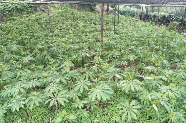 7、遮阴:重楼喜荫蔽、怕强光,全生育期均以透光度40~50%为好,因此出苗、移栽后就要采取遮荫措施,在有条件的地方最好采用遮阳网,没有条件的地方可采取插树枝遮荫的办法,还可视行间套种玉米等高秆作物遮荫,但要注意密度和间、套种方式。