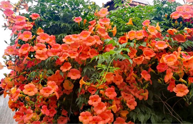 凌霄花是属于一种藤本植物,它的花期是在初夏到夏末这段时间,大部分人都会选择露天栽培,在北方零下30度的环境中都能够正常的生长,它的花色有橙色、红色、还有粉色,你可以根据自己的喜好选择上一棵,养在花盆里也是能够正常生长的,保证夏季通风,保证光照充足,保证盆土不缺少水分,做好这三点,再去定期的给他补充一下磷钾肥,夏季就能够开出漂亮的喇叭花。