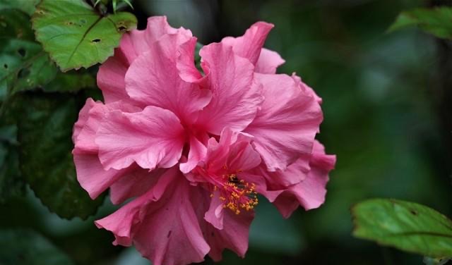 红芙蓉的花色是桃红色的,花开极美,是深秋时期最主要的观花树木。桃红色的是让人看起来最有气色的颜色,就好像现代化妆都是打桃红色的腮红一样,红芙蓉的花色就好像自己为自己打了胭脂,十分美丽动人。【足记网】