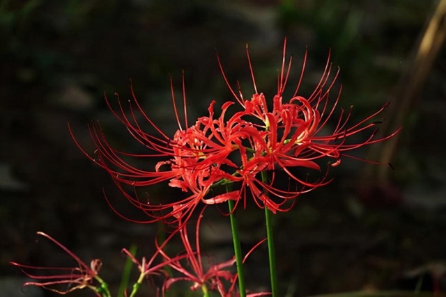 因一众植物间,红花最为常见,故彼岸花又名红花石蒜,花朵艳丽多姿,很有几分曼陀罗专属的风韵,时而被有的花友错认为同一植物。原则上,彼岸花还有一相似近种,名曰黄花石蒜,后者花如其名,花朵为素雅明丽的黄色,往往会在初夏时分先悄然盛开,再暗搓搓的消失无踪,其花语恰与充满悲情的彼岸花相反,含有幸福之意,大家一样需注意辨别。