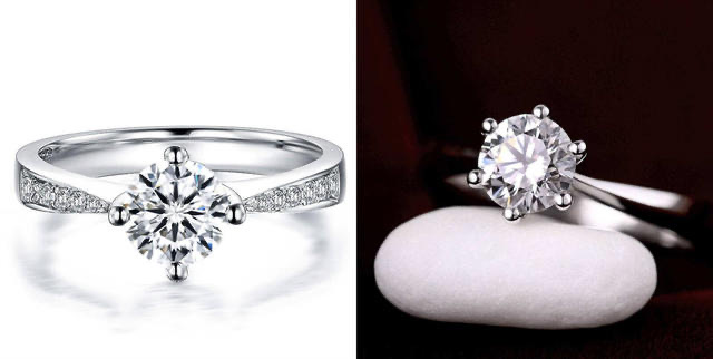 四爪镶嵌、六爪镶嵌等简洁款式,尽量少的遮挡钻石,会将钻石的火彩呈现的更动人。