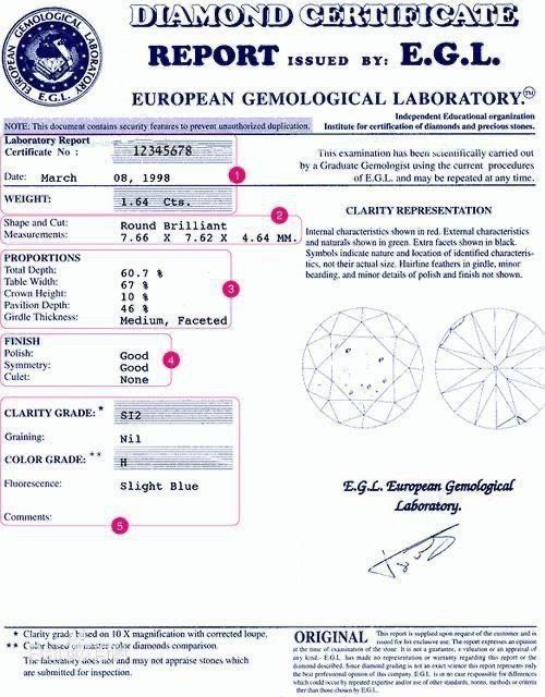 另外提一下,市面上还有一种证书叫EGL,是欧洲宝石学协会开具的。这种证书权威性很差,经常会发生过度评级的现象。也就是说,一个钻石如果在GIA颜色评级是中等,可能到了EGL就会评成高级。