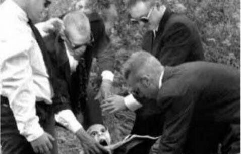 布莱索还能回想起前一夜曾经有过比打雷声还要大的爆炸巨响,他慌忙将这件事报告了镇长。镇长一步步上报上去之后,农场里已经围满了围观人员了!他们还在热烈讨论着这起事件。地上散落了许多块状物,不像金属、塑料、陶瓷、木块甚至任何可以知道的物质。已经被炸开的ufo里面还可以看到几具外星人尸体躺在驾驶室!