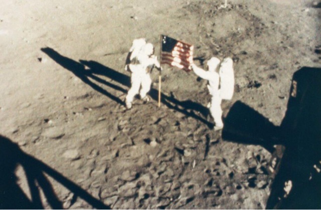 许多人看到阿波罗登月的录像是彩色的,却不知道原因。其实,如果仔细观察那段视频,会发现它是黑白录像上面套了彩色玻璃板而成的。彩色玻璃板是背景屏幕和摄影机之间加入的,在录像过后,它可以制作正常的彩色照片,而黑白影像则被废弃,彩色玻璃板的作用只是把黑白画面按照特定参数映射到不同颜色的玻璃上,达到彩色效果。