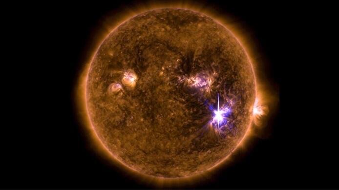太阳耀斑是一种极为强烈的太阳活动现象,是在太阳表面发生的突发爆发,释放出巨大的能量和物质,导致太阳大气的剧烈变化。耀斑是太阳上发生频率最高的活动之一,每天都可能发生多次。太阳耀斑释放的能量相当于数十亿颗氢弹的威力,温度可以超过一千万摄氏度,释放的物质会以高速射出。耀斑产生的磁场和带电粒子会对地球产生一定的影响,对卫星、通信系统和电力网等设施可能造成损害。