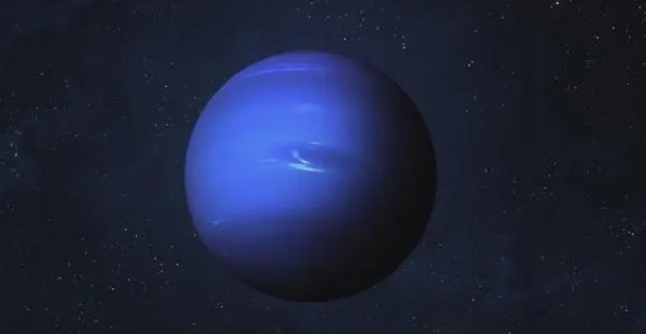 海王星是太阳系中第四大天体,距太阳30.1天文单位,质量1.0241×10^26kg,直径49244km,在1846年被首次观察到,是典型的气体行星,上面呼啸着按带状分布的大风暴或旋风,时速可达2000千米。