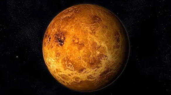 太阳系中第六大行星——金星,距太阳0.723天文单位,质量4.869×10^24kg,直径12103km,是所有行星中轨道最接近圆的一个,偏差不到1%,也是已知行星中最亮的一颗。