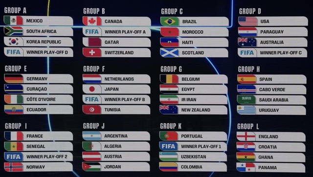 2026年美加墨世界杯亚洲分组情况: