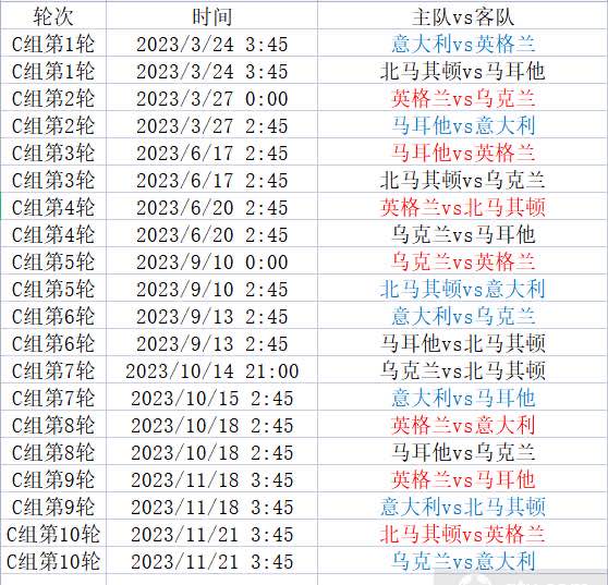 C组详细赛程表