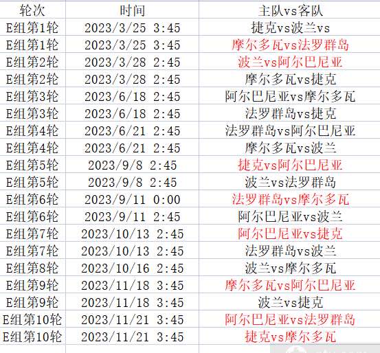 E组详细赛程表