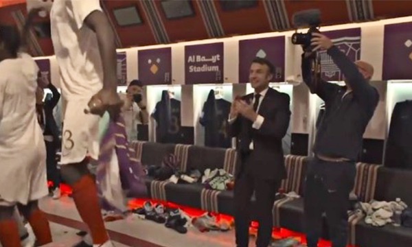 比赛结束后,马克龙兴致勃勃地来到了法国队更衣室,他要告诉球员们,自己同他们在一起,希望球队能够打好最后一场,把大力神杯再次带回法国。【足记网】当时马克龙急吼吼地跑了过来,还冲着门口的记者吐舌头做鬼脸,然后进了更衣室。球员们正在尽情庆祝,吉鲁站在了桌子上,引领着现场的气氛。马克龙想和球员们一一拥抱,表示一下祝贺。但刚抱了两个人,就发现进行不下去了。球员们对于和他拥抱一点兴趣也没有,转身就加入了狂欢的人群,把马克龙晾在了一边。