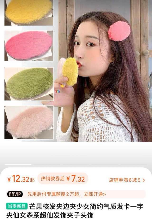 反应迅速的还有淘宝商家。在淘宝上,多家售卖獭兔毛发卡的店铺,已经把商品名改为芒狗发卡,还把首页图换成了芒果色的款式。还有商家打出“芒果核发卡”,不过商品的材质其实是毛绒与合金。