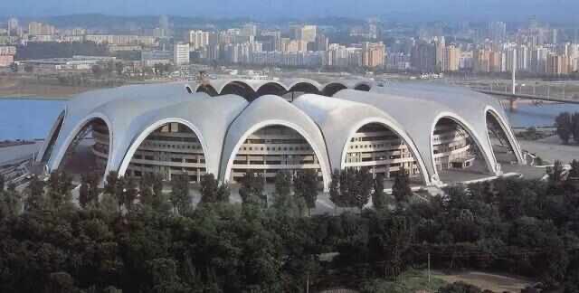 朝鲜的五一体育场场地面积为2.5万平方米,一共有八层,共有80个出入口,它的建设于1989年完成,主要用于足球比赛、一些体育赛事和群众比赛。其特点是16条曲线排列成一个环形,屋顶峰值距离地面197英尺以上。【足记网】作为世界上最大的足球体育场,还配有较为完善的基础设施,如桑拿房、游泳馆、训练场以及恢复区等等,就连朝鲜著名的体育科学研究室也在体育馆内。