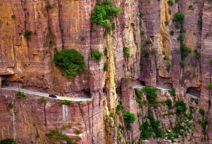 详细介绍:郭亮隧道是世界上最险峻的隧道,它是用手工工具铸造而成,这个隧道长达1200米,光是远处看就觉得让人震惊。