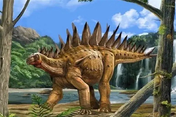 剑龙是一种生活在侏罗纪晚期的食草恐龙,脑袋较小,身体较大,背上被很多尖刺覆盖,可以用来防御外部攻击,由于牙齿无法闭合,平时主要以一些苔藓、蕨类植物为食。