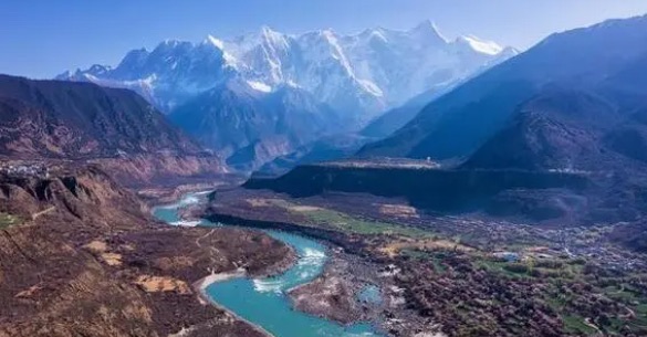 卡利甘达基河蜿蜒穿过尼泊尔卡利甘达基峡谷,比环绕着它的喜马拉雅山脉(Himalayan mountain)还要古老。它的河水也因冰川淤泥而呈现出黑色。