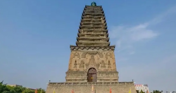 坐落在山西朔州市应县城西北佛宫寺内。不仅是我国最古老的木制佛塔,同时也是我国乃至世界上最高的木制建筑的佛塔,佛塔高67.31米,曾获得吉尼斯世界认证。